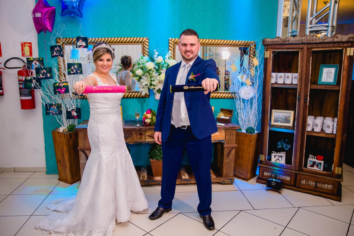 Neste dia realizei dois dos meus sonhos: casar e concluir a formatura, unindo nossa grande família numa grande comemoração. Dois sonhos em um único dia...